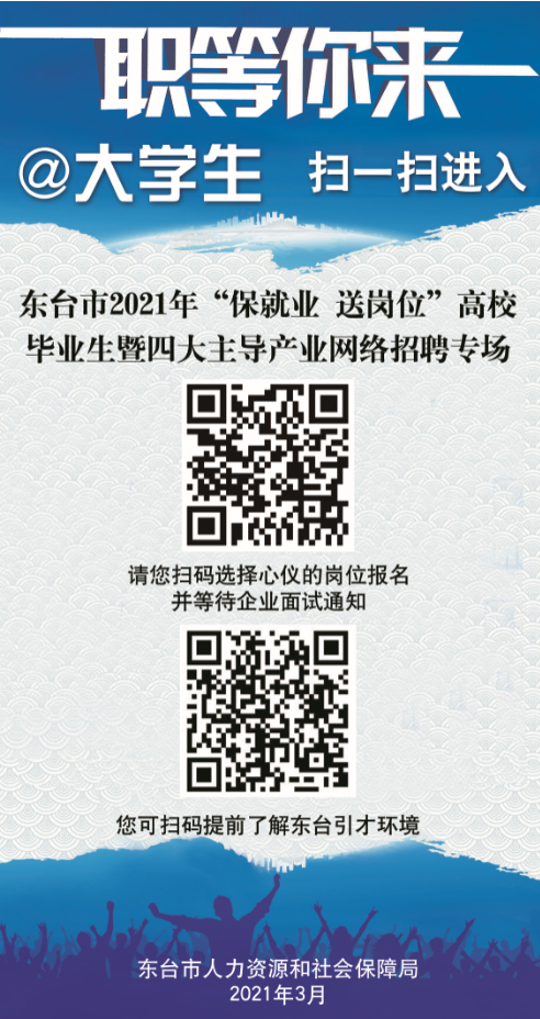 东台市2021年“保就业 送岗位”高校毕业生暨四大主导产业网络招聘专场